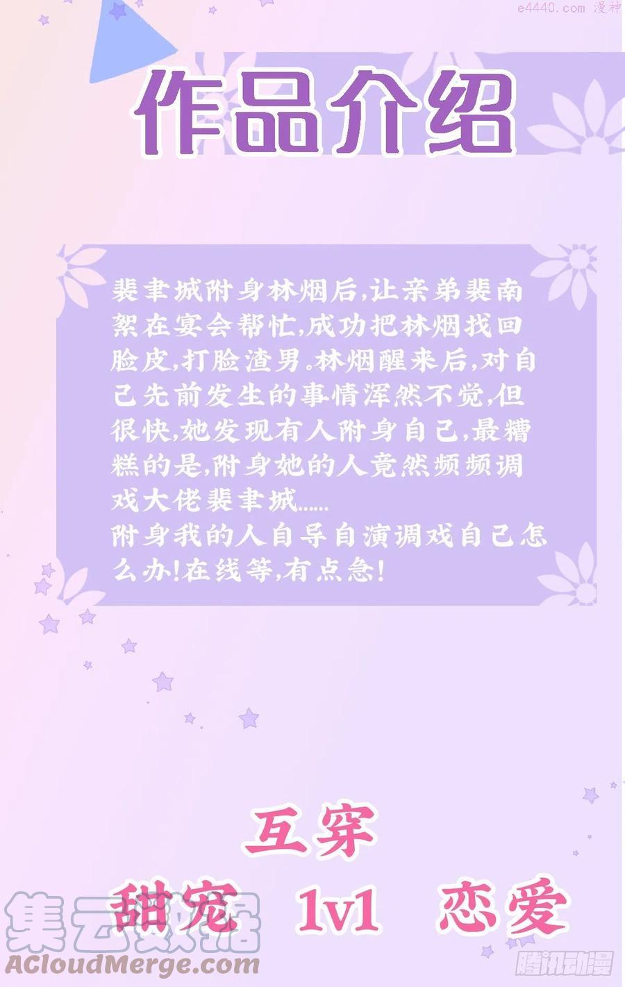 简介裴聿城附身林烟后,让亲弟裴南絮在宴会帮忙,成功把林烟找回脸皮,打脸渣男。林烟醒来后,对自己先前发生的事情浑然不觉,但很快,她发现有人附身自己,最糟糕的是,附身她的人竟然频频调戏大佬裴聿城……附身我的人自导自演调戏自己怎么办!在线等,有点急!