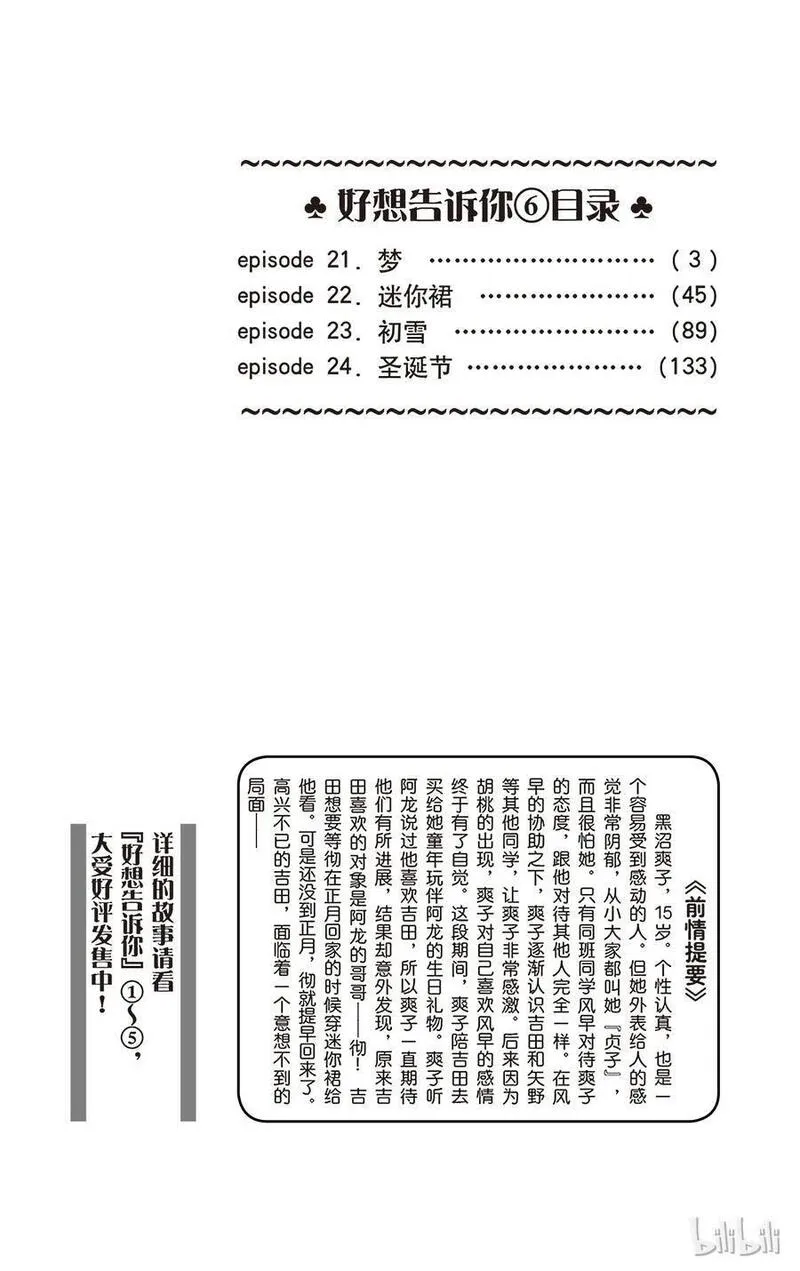 只想告诉你又名君に届け好想告诉你\,好想告诉你/只想告诉你,类型为爱情的高人气漫画,漫画简介:传说中的贞子有浓黑的长发,就算是在盛夏也惨白皮肤,阴沉的脸,连笑容都让人感到恐惧,只要与她对视3秒就会石化。更不用说接近她,令人发毛的阴森感。就是她——黑沼爽子,一个早已经被遗忘的名字,被大家称做‘贞...
