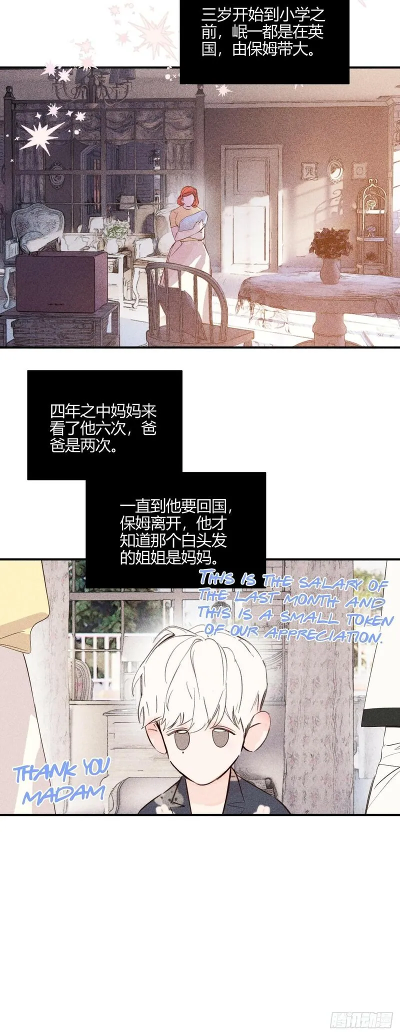 我以为一切就这样结束了,睁开眼睛一看却回到了过去。作为重新开始的祭品的生活,还以为这次也只会感受一辈子的痛苦然后死去呢。突然,从未见过的爸爸出现在我面前,像我这样完全不知道自己存在的爸爸。“你什么时候才要拿走我的力量?”伊凡娜的话让他睁大双眼。“大家都这么说,你什么时候拿走?”…我不会拿走的。”为什么?“伊凡娜无法理解。大家都贪图自己的力量,这是神为人类送来的祭品,所有人都想走。但是为什么这个人要拒绝呢?“现在谁也不能拿走你的力量了,谁也折磨不了你,我会保护你。”“你要把我的力量拿走。”“我不会这么做的。”“所有人都这样说,然后把我的力量夺走了,把我关在监狱里。”仅仅是5岁的孩子说出的话未免太残酷了,但是年幼的伊凡娜的脸上没有任何感情,似乎那是理所当然的事。女儿完全麻木的样子让他彻底崩溃了。