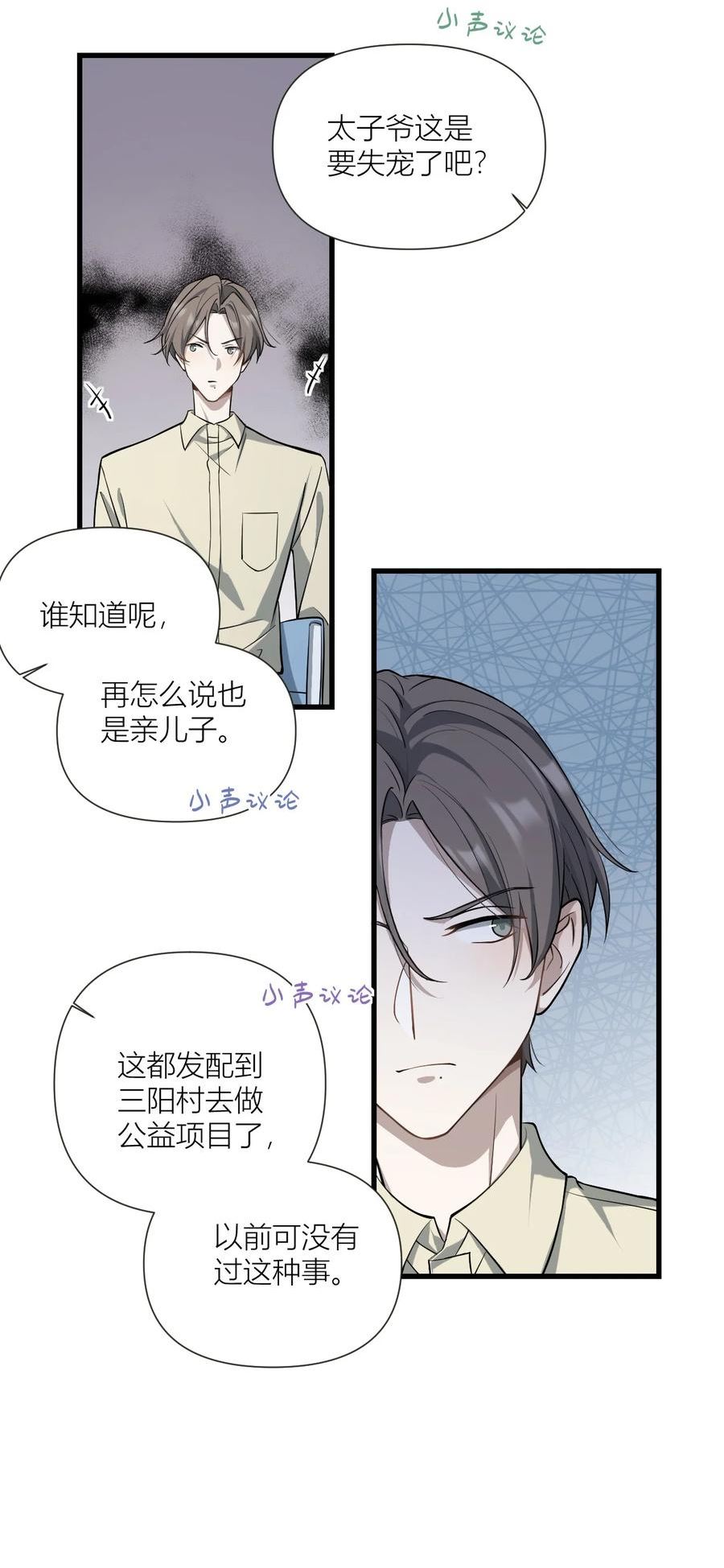 「别扭声优的低语」人气声优水岛想看心上人,菜鸟声优因幡哭泣,但是无论水岛对因幡说了什麽,因幡都会对水岛露出笑容。可是有一天,水岛看到因幡和女性朋友在一起就心生妒意,用语言伤了因幡,虽然因幡如水岛所愿哭了,但是水岛却一点也不开心…「傲娇声优的心语」声优和实喜欢搞笑演员贵文,为了接近贵文,和实还去贵文常去的酒吧,没想到有一天真的在酒吧里遇见了贵文,而贵文还主动接近他,说对他一见锺情…